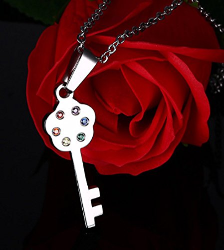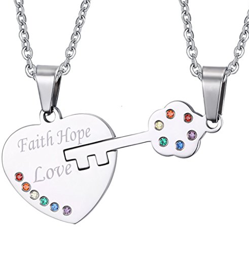 -. Title : Girl's Fashion Stainless Steel Necklace Heart Key Pendant Chain " Faith Hope Love " Couple Family Friend