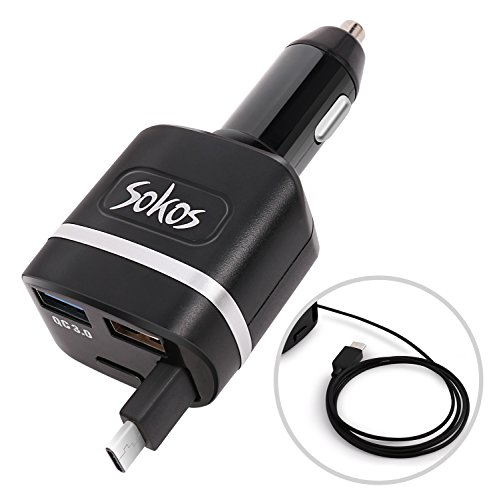 -. Feature : Type C Car Charger 3.0 --- Type C car charger fast charge 3.0 delivers up to 80% faster charging vs conventional USB charging, and is 100% backwards compatible with Quick Charge 1.0 & 2.0. / Retractable Type-C Cable --- The diameter for the cable is 2mm and 90cm length, it is strong cable to bear thousand times to take out and retract back. When you don't use it, just press the button to retract cable back to the house. You will see clear and tidy in your car. Very Convenience. / Dual USB Type C Car Charger --- Dual smart USB ports quickly and easily identify your mobile devices, to provide optimal charging efficiency automatically, simultaneous charging any two devices at high speed. Additional standard USB A port is QC 3.0, USB B port is 3.5A. Type C Car Charger can hold 3 different types of Phones. / Compatible --- Compatible with tablets and smartphones with a USB Type-C connector, such as Apple MacBook 12-inch/ Pro 2016 version, HTC 10, Nokia N1, LG G5/G6, Asus Zen AiO, Lumia 950/ 950XL, HP Pavilion x2, ASUS Zenpad S 8.0, Google ChromeBook Pixel, Nexus 5X/6P, Pixel/ Pixel XL, Galaxy Tabpro S/ S8/ S8 Plus/ Nintendo Switch. / Certificate --- Certified by RoHS, CE & FCC; High quality fire proof material & anti-oxidation aluminum pull tab.