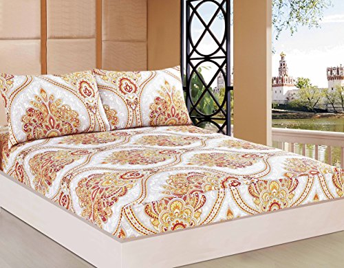 Tache 2 Piece Sunshine Festival White Gold Fancy Patterned Fitted Sheets Set, Twin