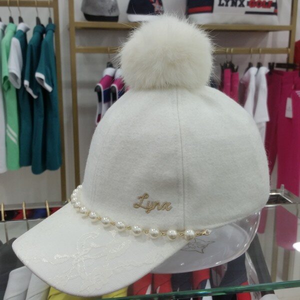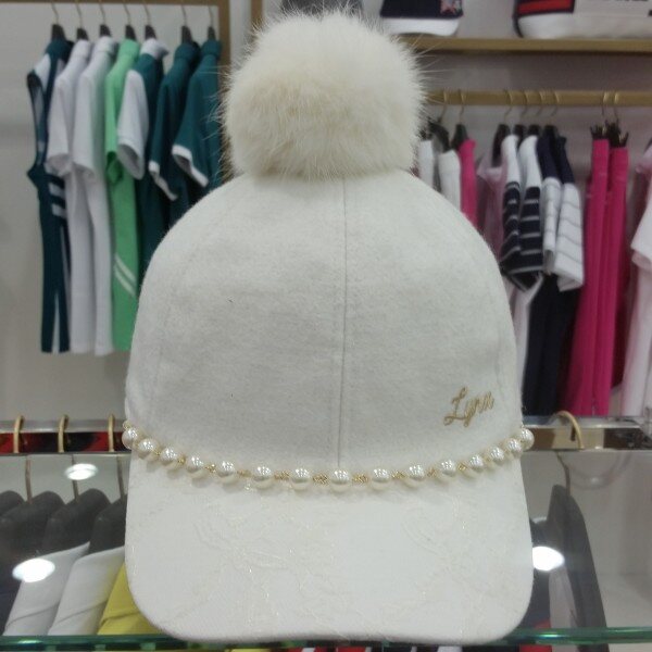 진주장식으로 고급스러움을표현한털방울캡입니다.