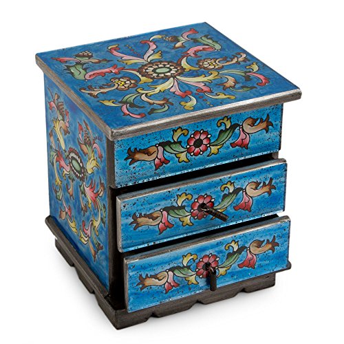 NOVICA Reverse Painted Glass and Wood Jewelry Box, Blue 'Celestial Blue'