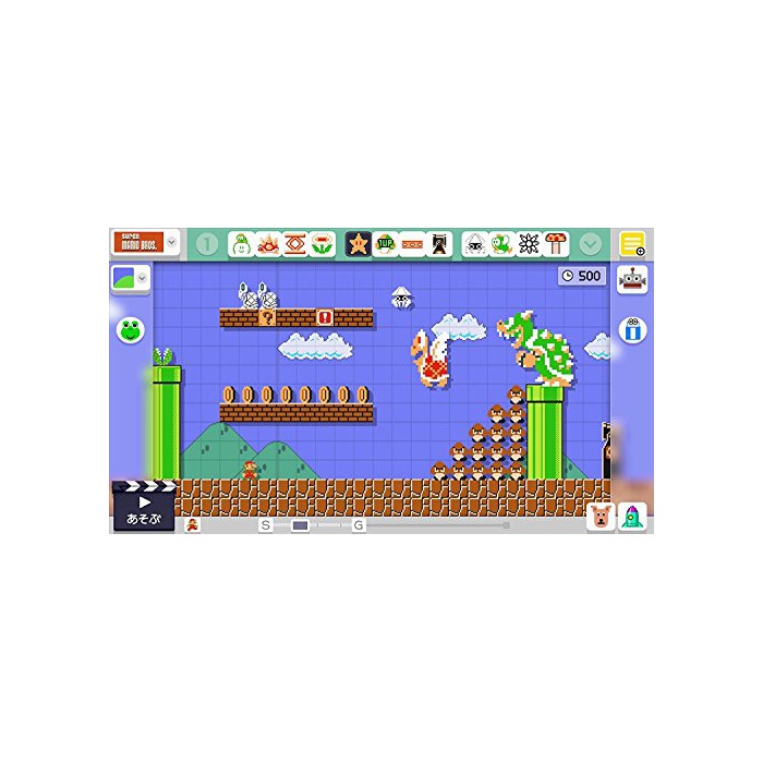 「만든다」블럭,아이템,캐릭터 등의 파트를 자유롭게 편성하는 것에,누구라도 간단하게 마리오의 코스를 만들 수 있다.