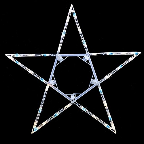 -. Title : 32" Folding Lighted Twinkling Star Christmas Window Decoration - Blue and Clear Lights