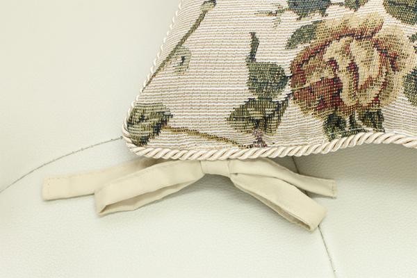 花柄が上品なクッションです。表地にはジャガード織の生地を使用しているため繊細な柄と上品な風合いが特徴です。