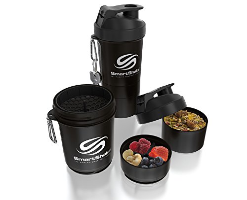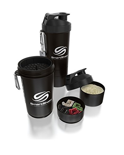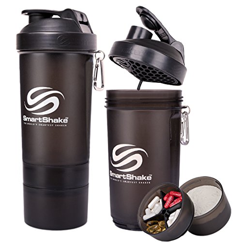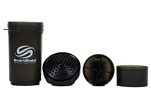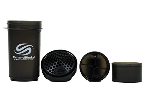 Studio : SmartShake Publisher : SmartShake Binding : Sports Product Description Staying healthy and prepared is simple with SmartShake, a smart new take on the original shaker cup. Its three compartments conveniently store powder, pills, snacks or keys - the possibilities are endless! The patented snap-on strainer will easily mix powdered drinks, sauces and dressings without clumps or lumps. The strainer is designed to mix the thickest ingredients and it is especially perfect for making scrambled eggs or omelets. Made of high-quality BPA-free plastic that is safe in the dishwasher, microwave and freezer. 27 oz. capacity to the rim of the cup, measurements up to 20 oz. With two or more cups you can mix and match the interchangeable pieces to create a unique multi-colored cup. 0