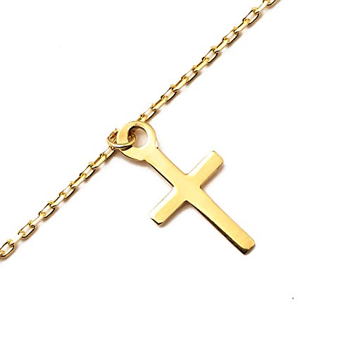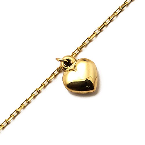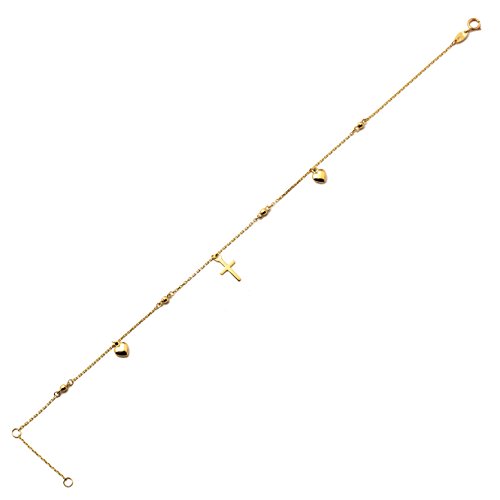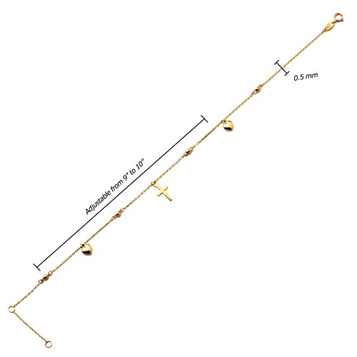 -. Title : LoveBling 10K Yellow Gold .5mm Rolo Chain with 2 Hearts 1 Cross Charms Anklet Adjustable 9" to 10"