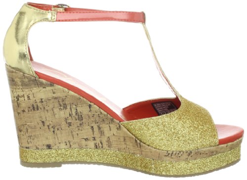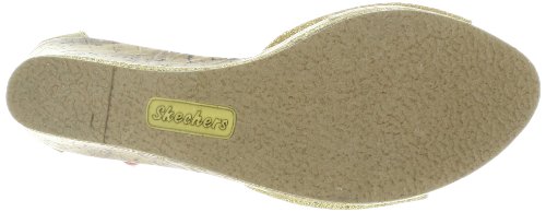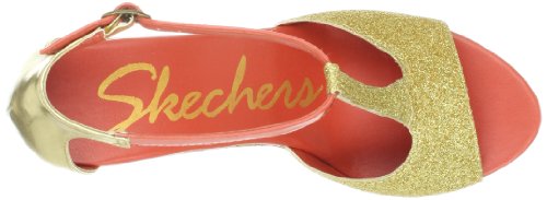 Studio : Skechers Publisher : Skechers Binding : Shoes Product Description Add some glittering glamour to any look with the SKECHERS Cali Bomb Shell - Let's Groove shoe. Glitter finish fabric and smooth faux leather upper in a wedge heeled dress t-strap slide sandal with cork veneer wedge heel. Smooth fabric upper with glitter finish. Smooth faux leather heel panel and ankle strap. Wedge heeled t-strap dress slide sandal design. Stitching accents. Glitter finish front tapering slide strap. Slim front T strap. Smooth faux leather heel panel. Contrast colored ankle strap joins with T-strap front. Adjustable metal buckle. Smooth faux leather strap lining. Cushioned faux leather topped footbed. Footbed with printed SKECHERS script logo detail. Natural textured cork veneer platform midsole and wedge heel. Glitter finish lower platform detail. 1 1/4 inch platform midsole height. 4 inch total wedge heel height. Crepe textured rubber traction outsole. 0
