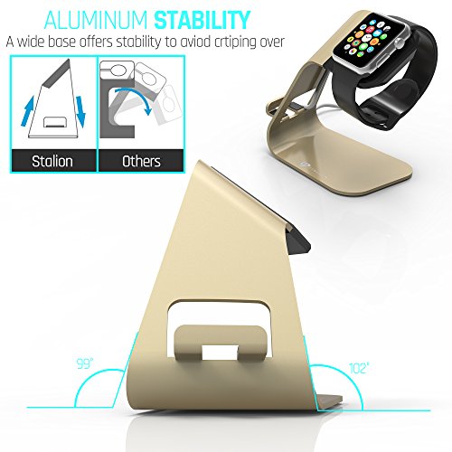 Stalion Apple Watch Stand Desktop Charging Dock Station for Apple Watch Sport Edition Aluminum Body Universal Cradle Holder for Apple Watch – Powder Gold