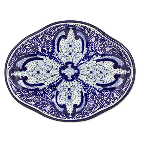 NOVICA Blue Floral Talavera Ceramic Plate, 'Puebla Kaleidoscope'