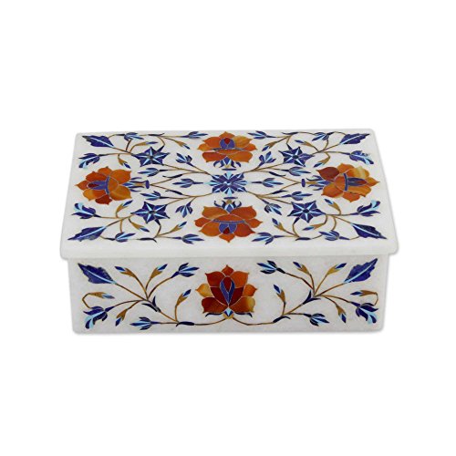 NOVICA 'Marigolds' Marble Inlay Jewelry Box