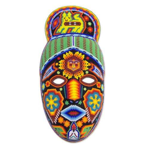NOVICA Decorative Huichol Beaded Papier Mache Mask, Multicolor, 'Messenger'