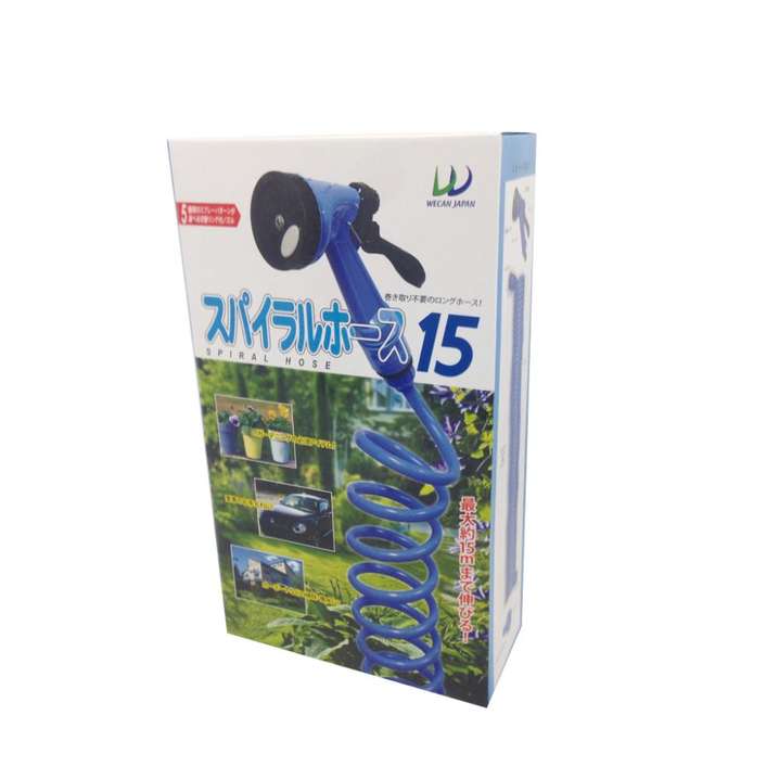 ●面倒な巻き取り作業が一切不要の15mのロングホース!5種類のスプレーパターンが切り替えられるノズル付きでガーデニング・洗車などに最適。