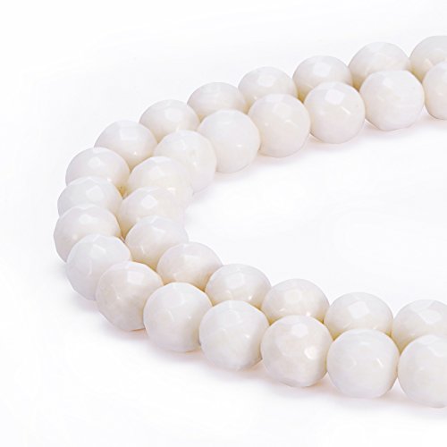 BRCbeads Natural White Coral Gemstone Loose Beads Faceted Round 8mm Crystal Energy Stone Healing Power for Jewelry Making