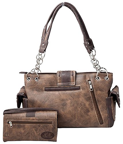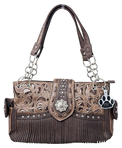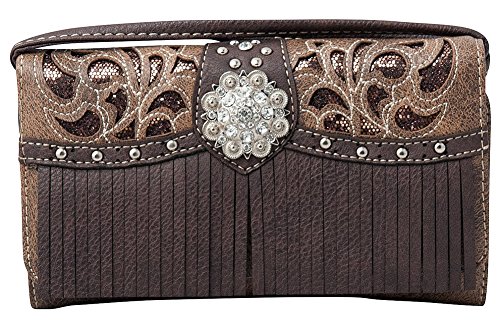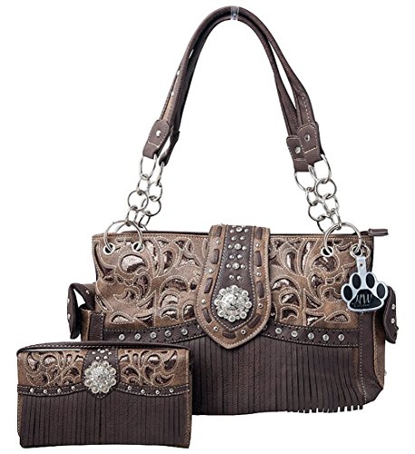 HW Collection Western Rhinestone Concho Buckle Fringe Concealed Carry Handbag Purse and Wallet Set