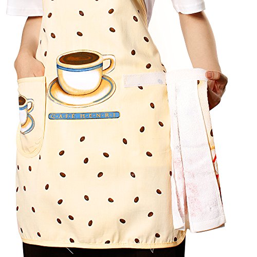 - WALK AROUND IN STYLE: We are proud to help you look gorgeous even when you work. Our Cotton Apron will protect your clothes from getting dirty. It comes with a single pocket and a hand towel that makes your life easy. The pocket can easily carry your mobile phone and keys.