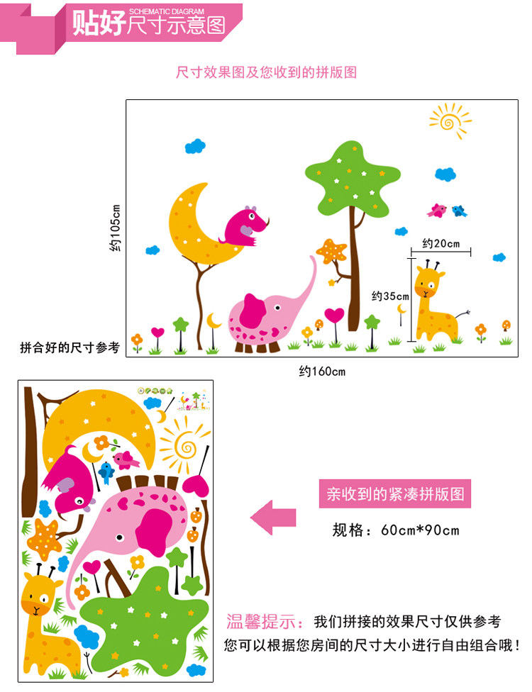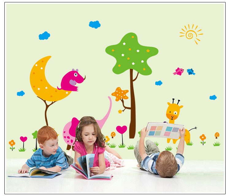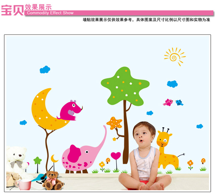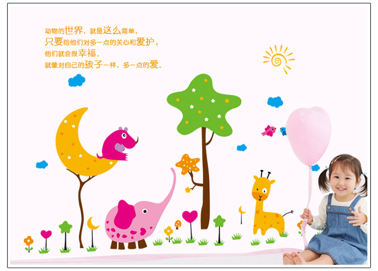 幼儿园教室布置儿童房卧室床头背景装饰贴画墙贴纸 卡通动物