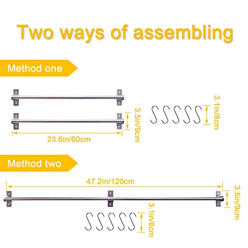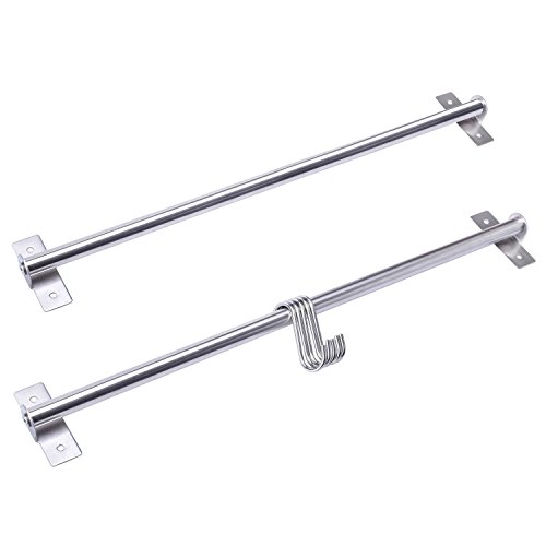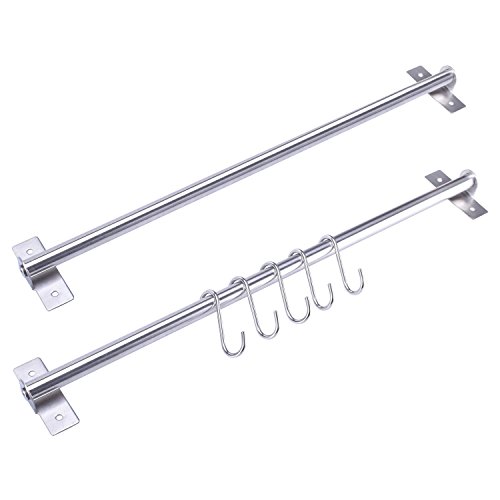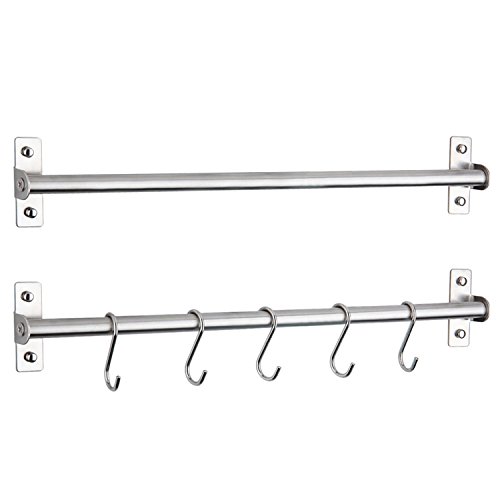 Stainless Steel Utensil Hanging Rack To Hold and Organize Kitchen Tools Utensils Pots Pans On Wall Mounted Hanger Bar Rail Pan Pot Rack with 5 S-Hooks ( Set of 2 )
