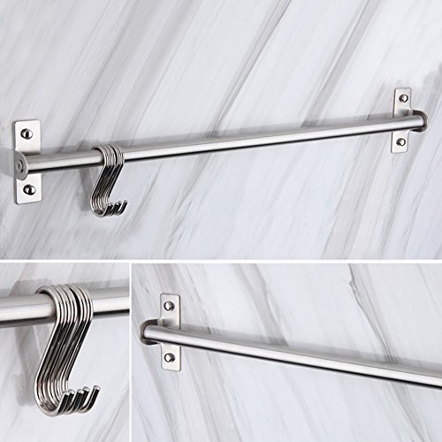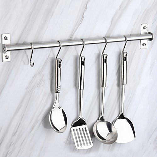 Hanging Utensil Rack hanging is made from premium grade stainless steel so it will not rust and will last for many years. Solid metal construction, strong, reliable and heavy duty design. It is easy to install, looks good and eye-pleasing. It fastens well to the wall and doesn’t wobble. You won't need a handyman to mount this rack. The linear arrangement offers versatility and helps you organize your pots, pans and other utensils effortlessly.