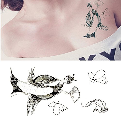 Oottati Small Cute Temporary Tattoo Geisha Butterfly Chest (Set of 2)