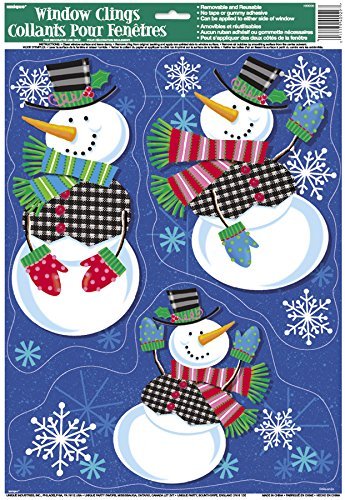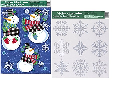 Snowmen And Glitter Snowflakes Christmas Window Clings - Christmas Decorations - Large Sheet 17 x 12 (Snowmen And Glitter Snowflakes Window Clings)
