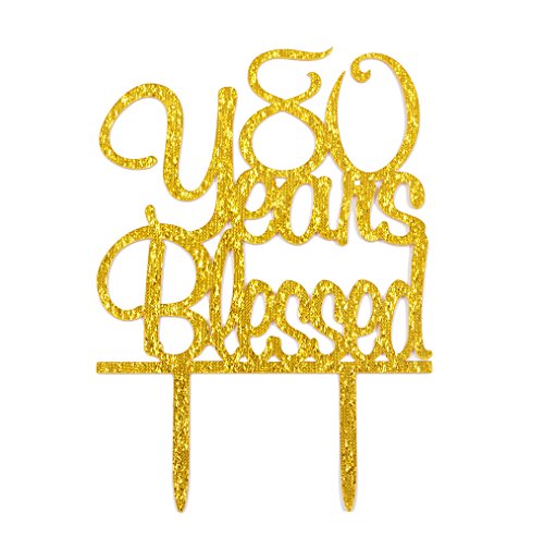 - Size: Approx. 6.7-inch Height x 5-inch Width. Package Includes: 1 Gold 80 Years Blessed Cake Topper