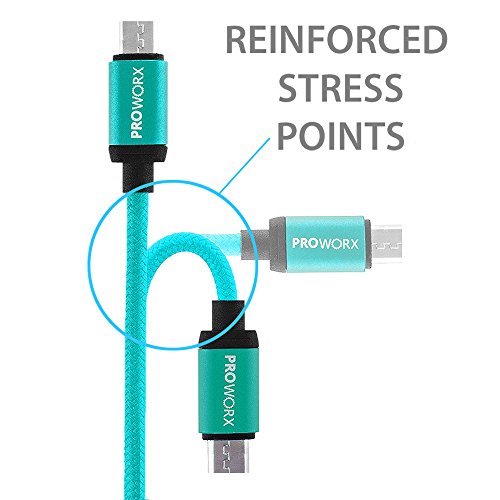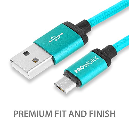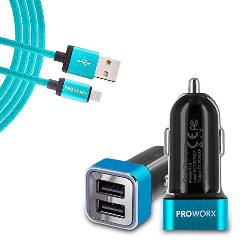 Dual Ports USB Car Charger, PROWORX 4.8Amp/24W Fast Rapid Charging Car Charger & Premium 3FT MICRO Cable Baby Blue For Samsung, LG, Motorola, HTC, ZTE, Android Phones