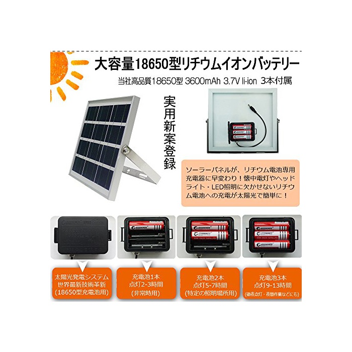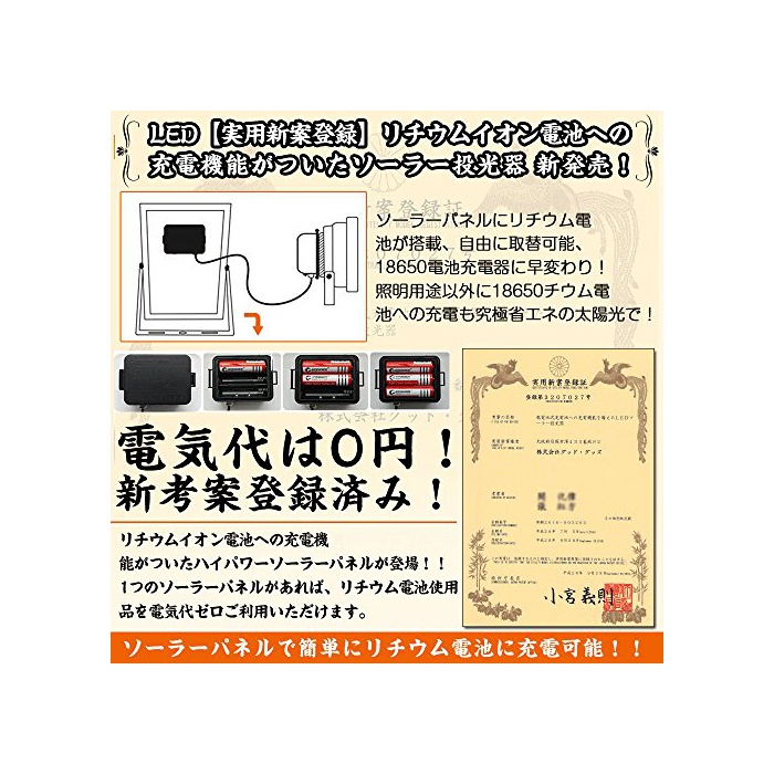 【JAN코드4571461861043취득필】전지 교환 대응식 광감센서 부착 솔라 충전식 고휘도 센서LED투광기입니다!18650전지 충전으로 대응