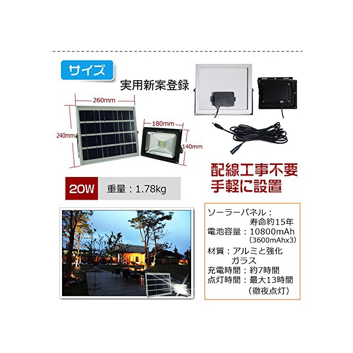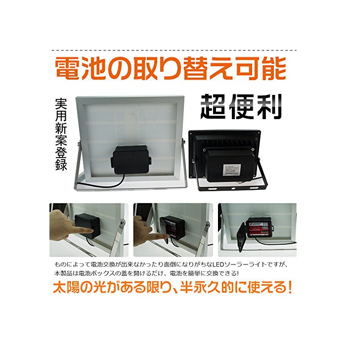 원본상품명: ?用新案登? GOODGOODS LED 充電式 ガ?デンライト ソ?ラ? 20W 防水 屋外 投光器 電池交換??式 光センサ?付き 【一年保?】 TYH-25T
