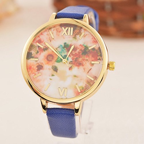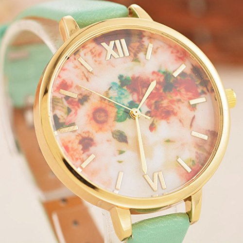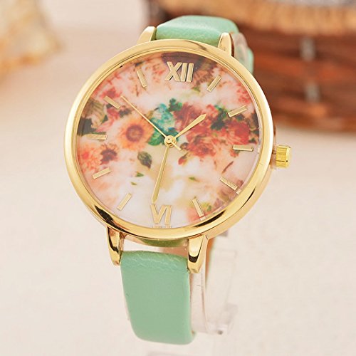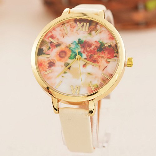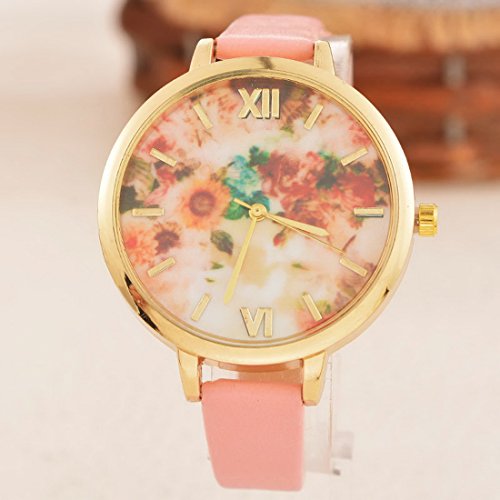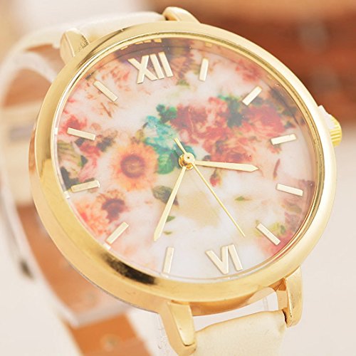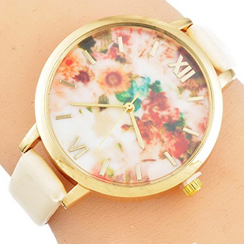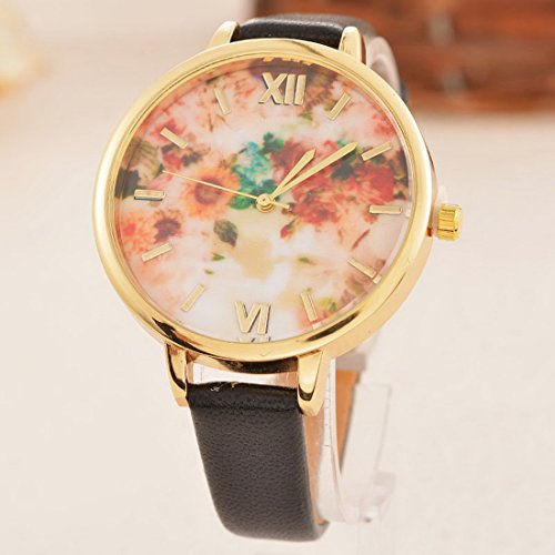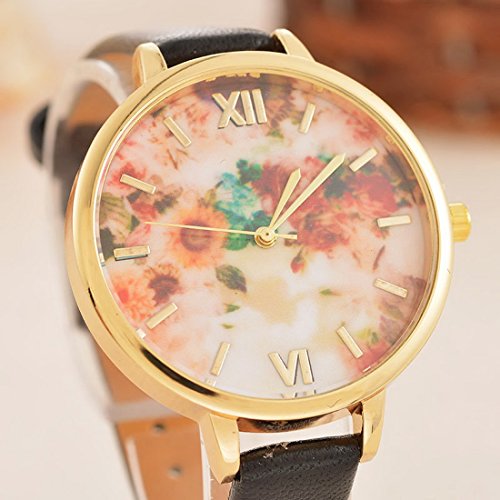 -. Title : Souarts Womens Artificial Leather Flower Dial Quartz Analog Wrist Watch 22cm