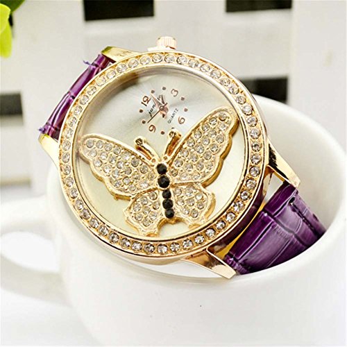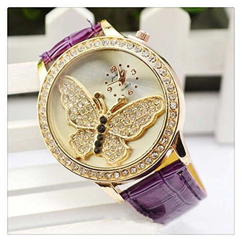 -. Title : Fashion Crystal Accented Analog Watch Butterfly Faux Leather Band Quartz Wrist Watch for Women, Girls, Ladies Purple