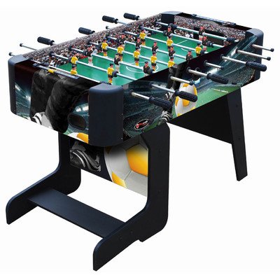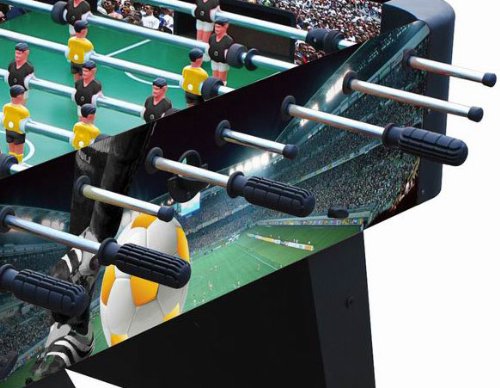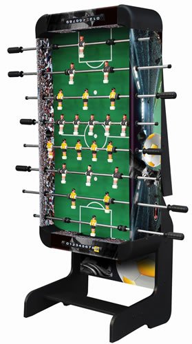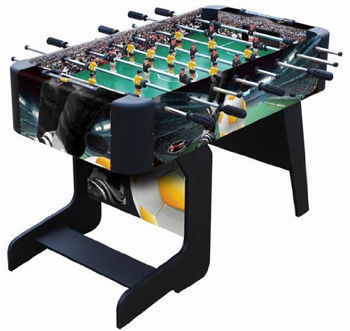ReleaseDate : 2013-03-18 Studio : Playcraft Sport Publisher : Playcraft Sport Binding : Sports Product Description Athletic color story and soccer graphics Unified leg panel design with leg spanners on each side MDF construction Strong Chromium steel rods with slide bearings for smooth rotation Ball serve cups on both sides for convenience Internal ball retrieval at each goal Plastic manual slide scorers at each goal ABS plastic corners Chrome plated leg levelers Includes 3 foosballs Also available in a model with folding legs. 0