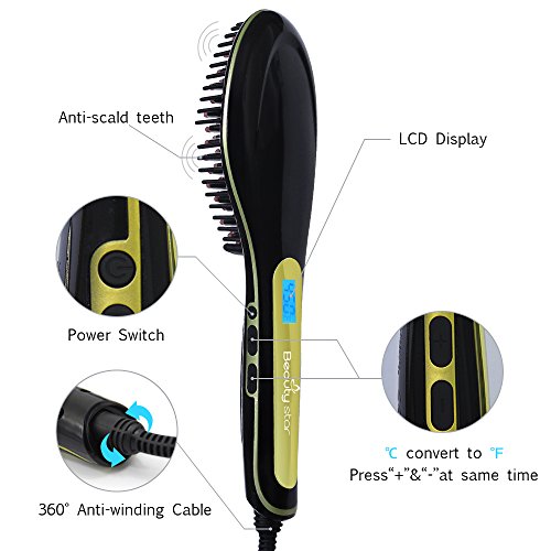 Advantages:Brush Beauty Star supply 12 months warranty, The digital hair straightener brush will be a perfect replacement of traditional flat iron straightener which helps solve your hairstyle problem and support head massage without any harm.