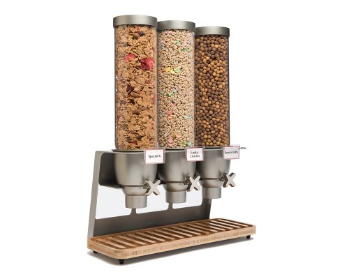 Rosseto EZ547 EZ-SERV Triple Container Table-Top Cereal Dispenser with Bamboo Tray, 3.9-Gallon Capacity, 9" Length x 21" Width x 26" Height