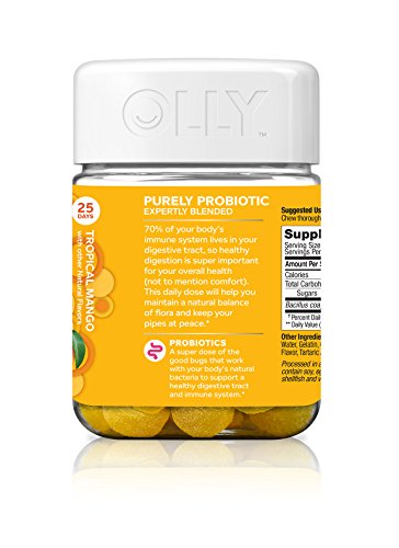 OLLY Purely Probiotic Gummy Supplements, Tropical Mango (Packaging May Vary), 50 Count