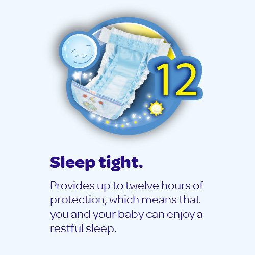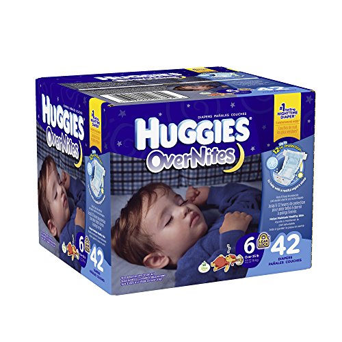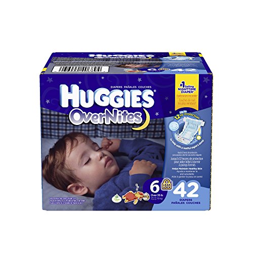 Night-time sometimes calls for a different level of protection, and Huggies overnites diapers are our most absorbent diaper. It's a simple way to give everybody sweet dreams. Fits toddlers over 35 pounds. Our most absorbent diaper to help keep baby comfortable and dry. Up to 12 hours of protection against leaks. The snug fit waistband helps the diaper stay in place throughout the night. Unique tabs for a secure fit.Feature
