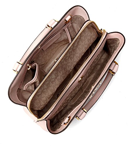 Combining expert craftsmanship with sleek functionality, this medium-sized satchel will keep all of your essentials perfectly organized. Signature lettering adds an iconic pop to this wear-with-anything bag. With various ways to carry it, this accessory is meant for versatile styling! 12.5-in. W x 8.5-in. H x 5-in. D Magnetic snap closure Interior: 1 back zip pocket, 2 back slip pockets, 1 center zip pocket, 2 front slip pockets, 1 key clip Double top handles; removable/adjustable strap with 21-in. - 24-in. drop Gold-tone hardware; self-color stitch trim LeatherFeature