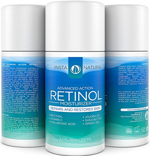 -. Feature : Maximum Strength Retinol - With a 2.5% concentration of Retinol (Vitamin A), InstaNatural's Retinol Moisturizer provides a strong dose of this renowned anti-aging antioxidant to deliver optimal results. It is the Perfect Night or Day Cream to Reduce Wrinkles and Other Signs of Aging - Hydrates Skin and Restores Even Skin Tone & Texture for a Youthful Radiance / Fights Wrinkles, Fine Lines & Hyperpigmentation - Vitamin A, along with Vitamin C and Green Tea, provide strong antioxidant power to fight against the signs of aging. These nutrients work synergistically to reverse the effects of sun exposure and other aggressors that damage the skin, leading to the development of wrinkles, fine lines, dark spots, and more. Use night and/or day to even skin tone and texture for a youthful radiance. / Reduces Blemishes and Breakouts - Vitamin A has also been known to help with blemishes. By removing dead skin and unclogging pores, Retinol can help control breakouts so you can achieve a clearer, smoother, flawless complexion. / Hydrates Skin - InstaNatural's Retinol Moisturizer formula contains a creamy blend of nourishing ingredients, such as Jojoba Oil, Hyaluronic Acid, and Shea Butter, which keeps skin well hydrated. Once applied, the retinol cream will leave your skin feeling soft and supple throughout the day. / Manufacturer Guarantee - InstaNatural is proud to back their products with a 100% Satisfaction Guarantee Policy, no matter where you buy the products. If you are not completely happy with your purchase, please contact InstaNatural for a refund - no questions asked.