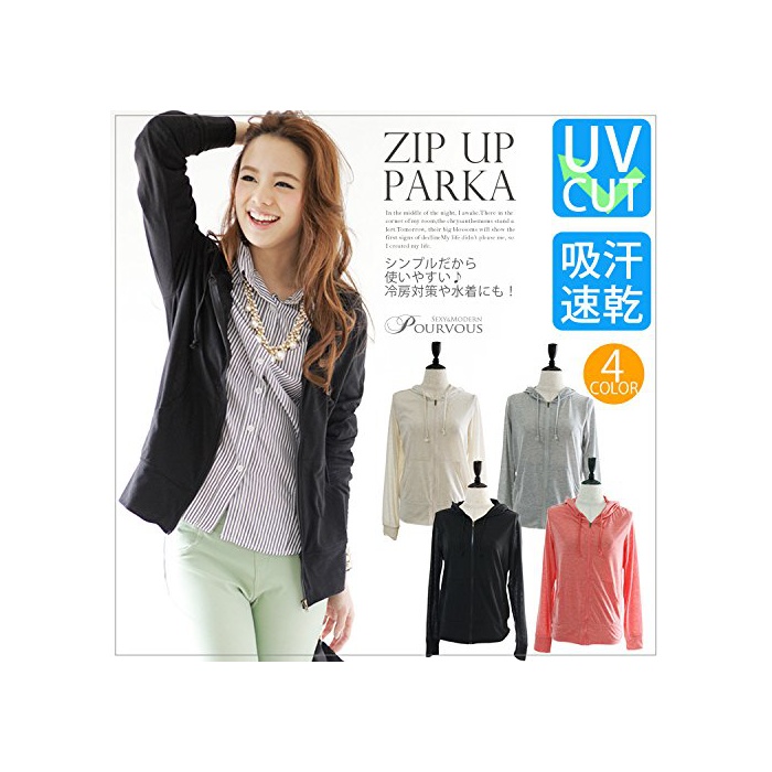 PourVous(풀《―》) (풀《―》) PourVous 파커 아우터 레이디스 후드 부착 UV컷 크 큰 사이즈 긴 소매 1598