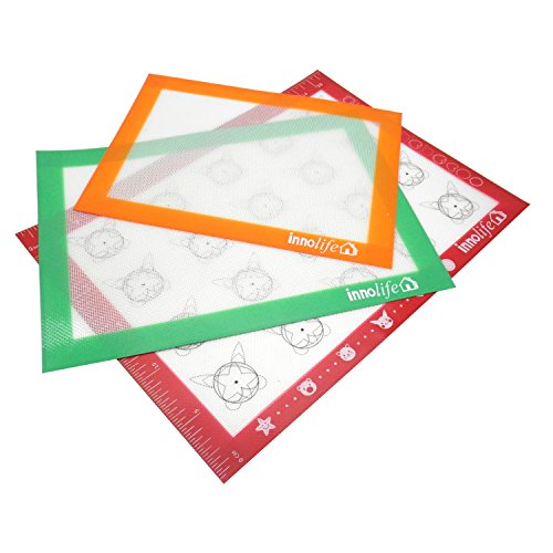 InnoLife Set of 3-sizes Silicone Baking Mats Professional Grade BPA Free Non Stick Non Skid - Measurements & Shape for Large Bake Pans & Trays Toaster Oven - Macaron/Pastry/Cookie/Bun/Bread Making