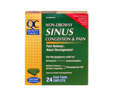 Product Description Quality Choice Non Aspirin Sinus PE Congestion Pain Relief caplet for the temporary relief of headache, sinus congestion and pressure, nasal congestion and minor aches and pain. Cool taste. 0