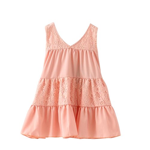 Little girls lace floral dress for summer. V neck collar design front and back makes it cool.V neck design: