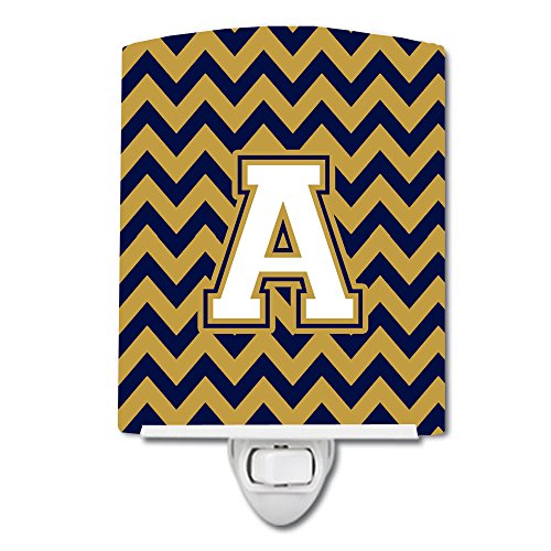 Caroline's Treasures Letter a Chevron Navy Blue and Gold Ceramic Night Light, 6 x 4", Multicolor