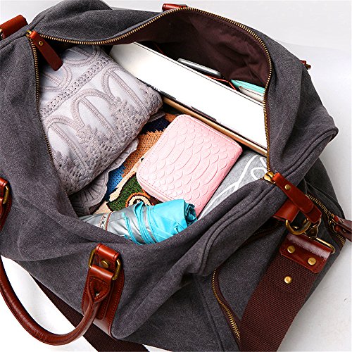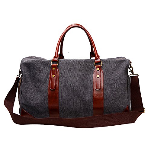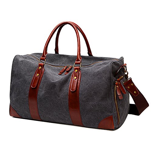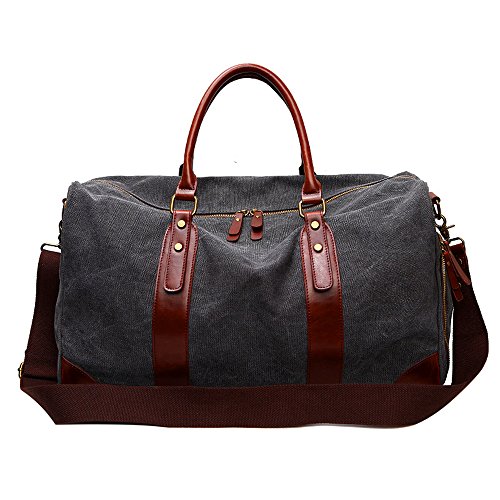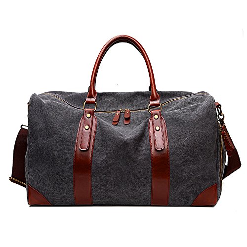 -. Feature : This duffle bag is made of high quality soft canvas, decorated by top quality crazy horse pu leather which makes the bag more fashion and casual. / Bidirectional secure zipper opening for easy access and the leather zipper pulls are large and made well. Interior with 1 large main compartment to hold 17" laptop, IPAD PRO, daily essentials like clothes, shoes, etc; 1*inner zipper pocket and 2* inner open pockets; Exterior with a side zipper pocket to manage your lage. / The bag is compact and the long durable shoulder strap is made well, good quality hooks makes it easy to transport from shoulder to hands with comfort and sturdy grips. / Multipurpose: For gym, sports, travel, lage, on a business trip, hiking, camping,daily using, house-moving or emergencies, checked bag, weekend bag,airline bag,overnight bag and carry-on bag. / Perfect size and light weight -dimensions: 19.7(l) * 11.81(h) * 9.45(w) inch. Would work great as a carry on while flying, on the train, on the bus, or in any form of transportation.
