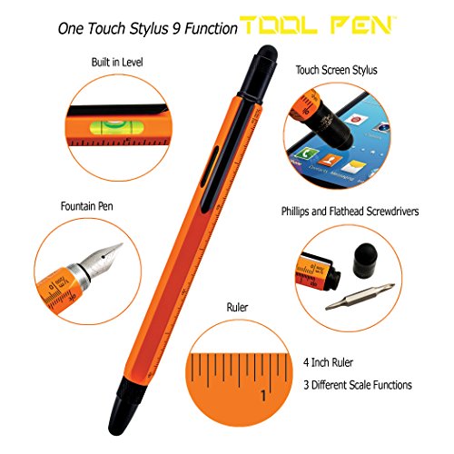 -. Feature : Ultra smooth writing / 9 Tools: 3 Rulers, Built-In Level, Phillips & Flathead screwdriver, pen, and stylus / Stylus as responsive as a finger touch / Heavy weight, 6-sided barrel / Excellent gift for all