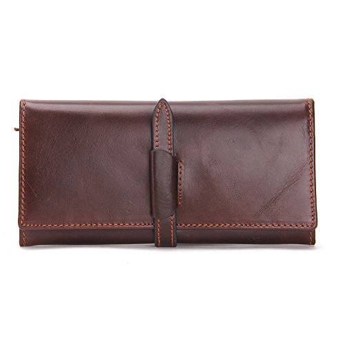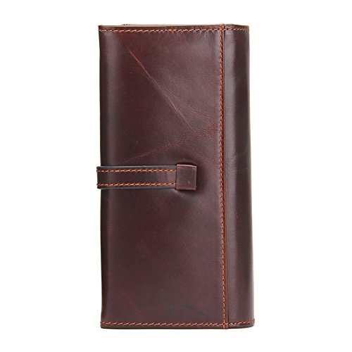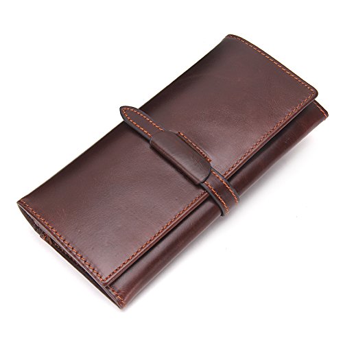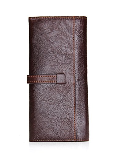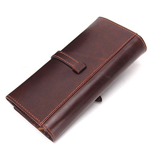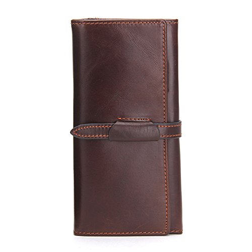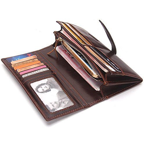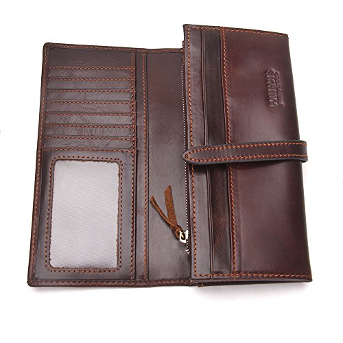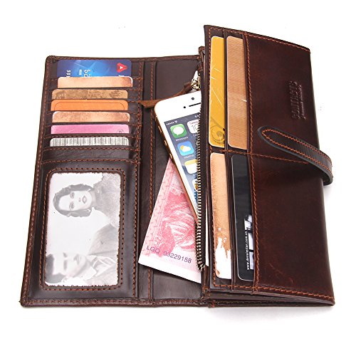 -. Title : Contacts Genuine Cowhide Leather Men Long Wallet Coin Vintage Male Purse Brown