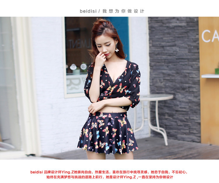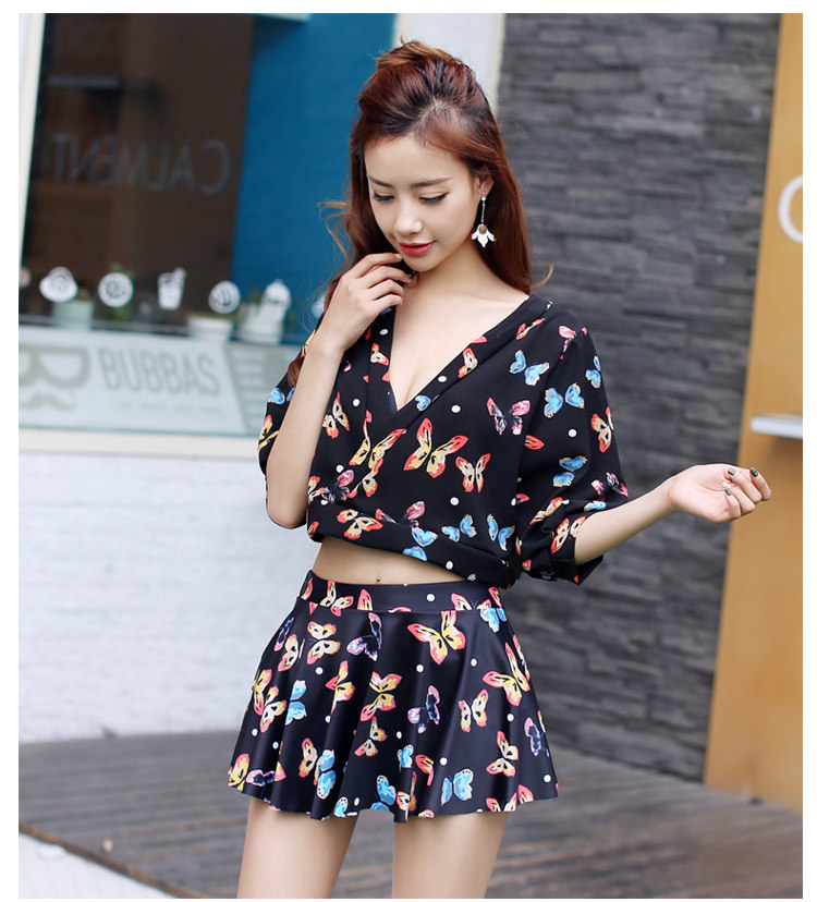 裙式分体新款泳装女大胸小胸钢托聚拢显瘦四件套比基尼蝴蝶游泳衣