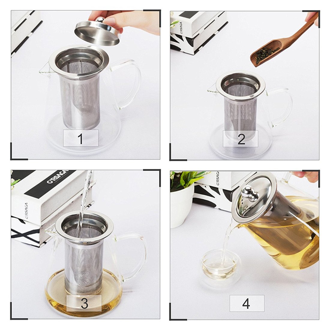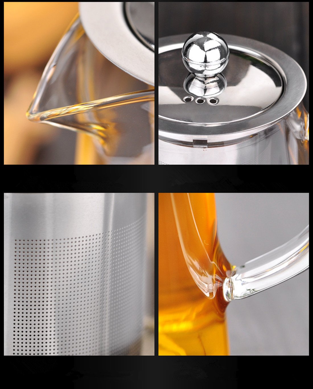 Material: Main body / Heat-resistant glass (heat resistant temperature difference 120 degrees), lid / tea leather / stainless steel