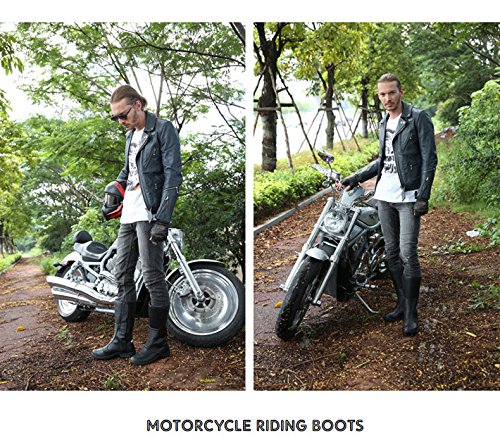 Product DescriptionSpecification: Condition: Brand New Upper Material: Cow leather Sole Material: Rubber Size: EU 40-45 Package includes: 1 Pair Motorcycle Boots0