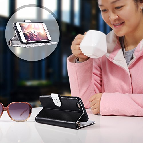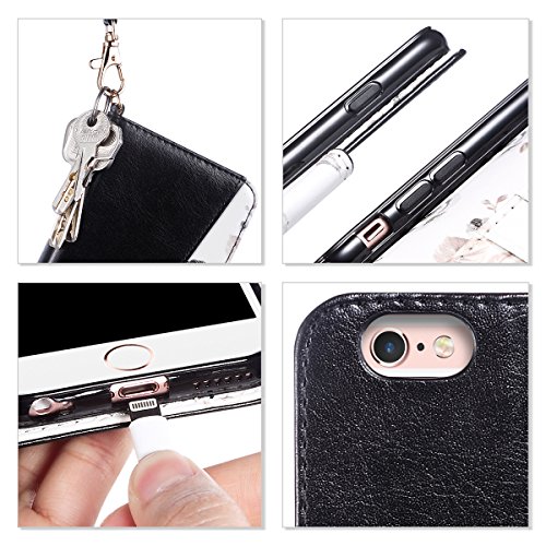 -. Feature : iPhone 6s case for women compatible with iPhone 6s 4.7 inch 2015 Release and iPhone 6 4.7 inch 2014 Release, will not fit iPhone 6 Plus 5.5 inch or iPhone 6S plus 5.5 inch / iPhone 6S case folio made from premium PU leather cover and soft shockproof TPU case made to store your cash or cards and while giving you a protective fashionable cover / Act as a convenient purse with a removable wristlet strap and multi card slots include on see-through slot for I.D. Card, credit card, and cash for on the go people; / The PU Leather flip covers the screen of the phone avoiding scratches from day to day use. The foldable kickstand feature provides convenient hand-free viewing experience. / Precise cutout ensure full access to all the function and ports to your phone; easy to put the case on and off the phone .