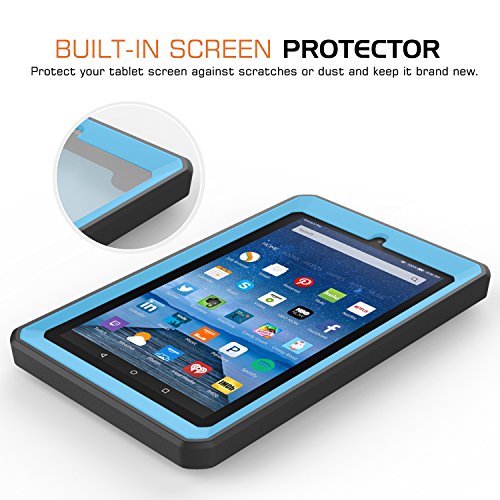 MoKo Case for Fire 2015 7 inch - [Heavy Duty] Shockproof Rugged Cover with Built-in Screen Protector for Amazon Fire Tablet (7" Display - Previous 5th Generation, 2015 Release Only), BLUE & BLACK